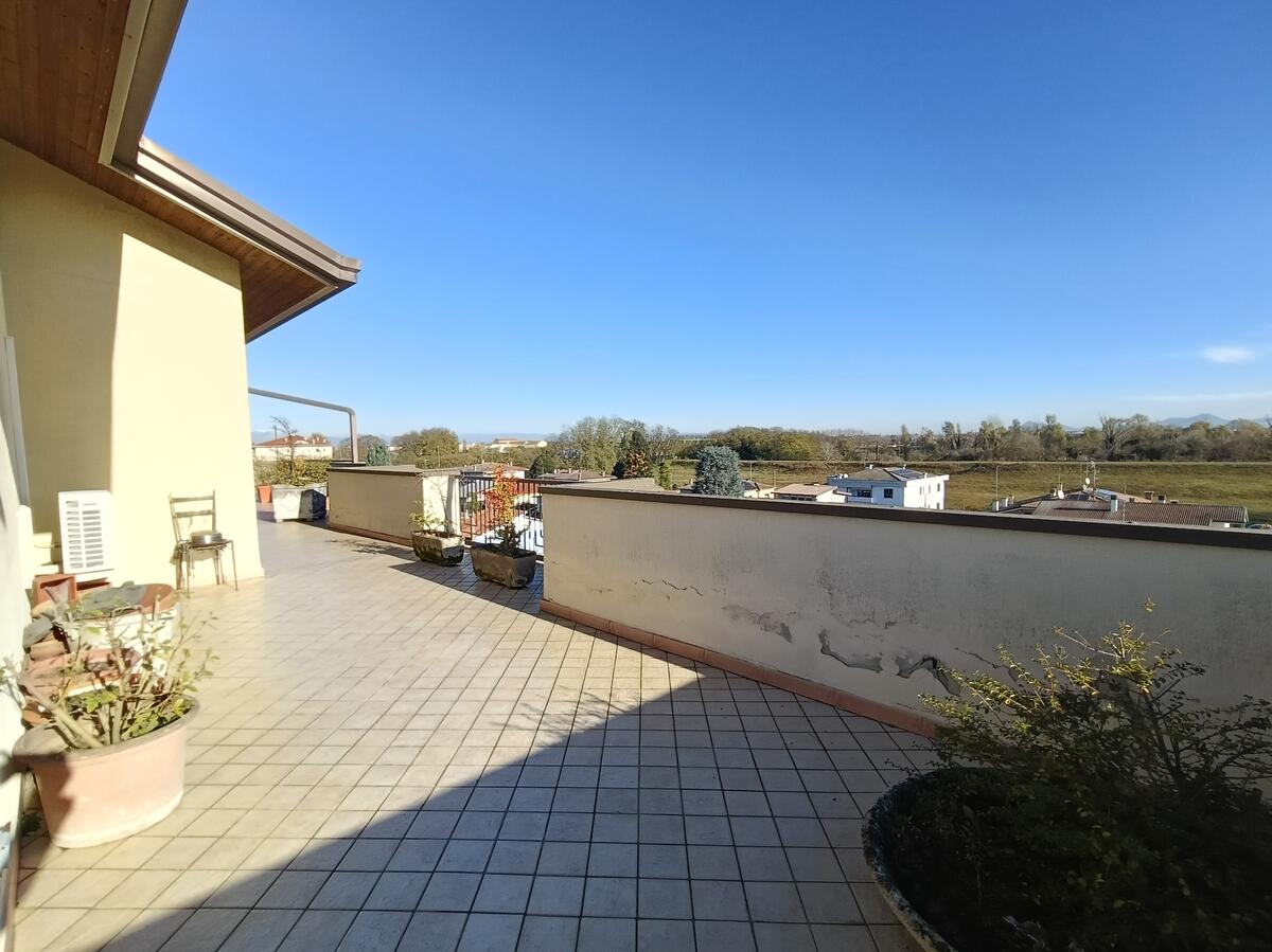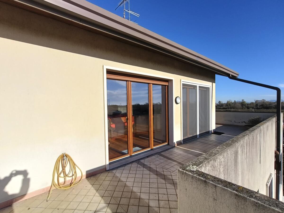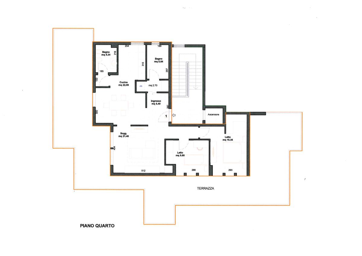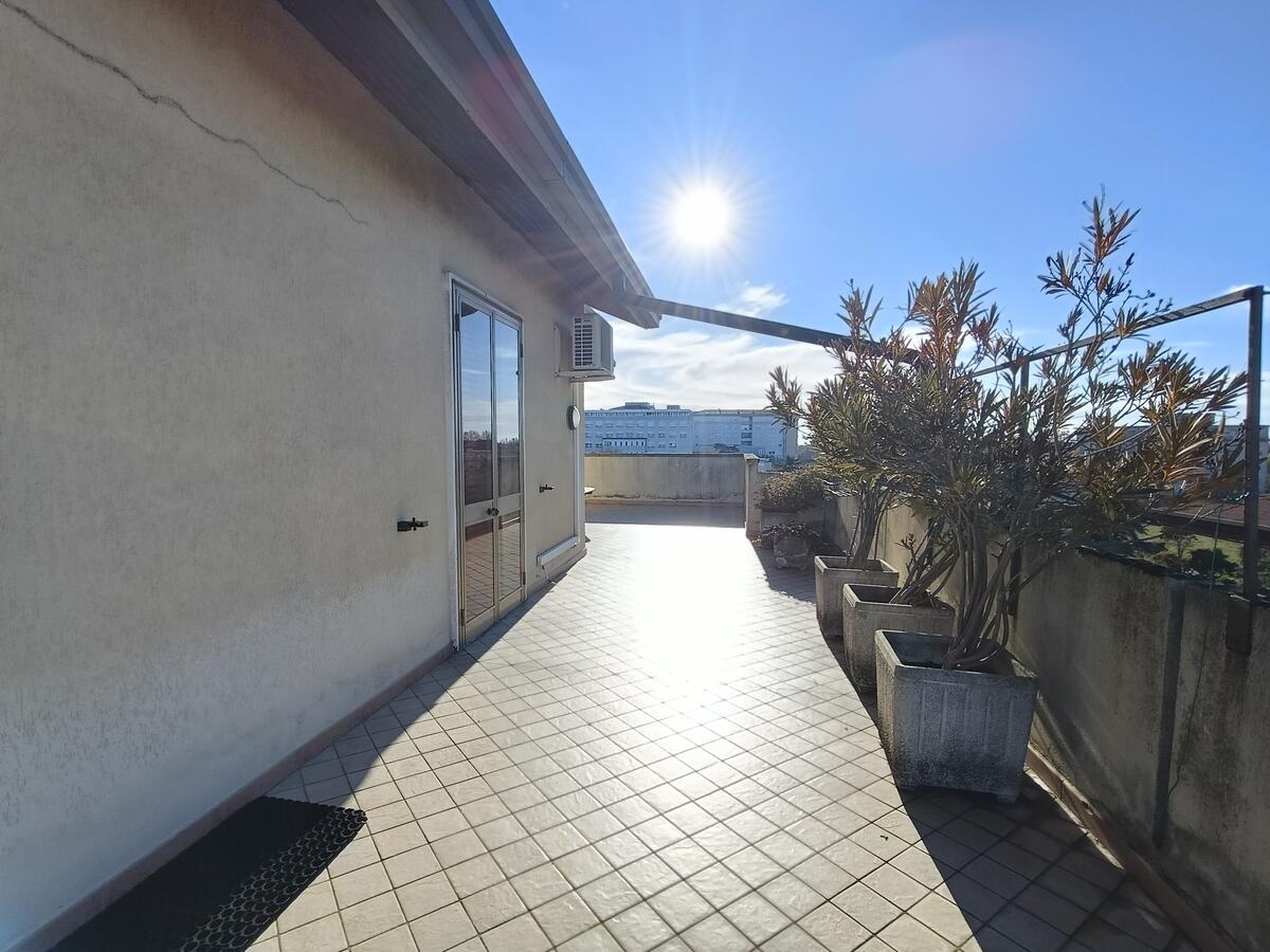 Grazie al progetto allegato, potrai visualizzare la nuova distribuzione degli spazi: sarà possibile rimodulare la cucina e il soggiorno, creando una luminosa zona pranzo con accesso diretto alla spettacolare terrazza di 90 mq, punto forte dell'immobile. Questo spazio esterno rappresenta un vero e proprio angolo di paradiso, perfetto per momenti di relax e convivialità.